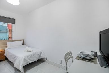 Lovely single room where you will feel at home, with TV, wardrobe and a desk if you need to work, study or have a snack.