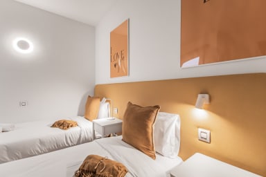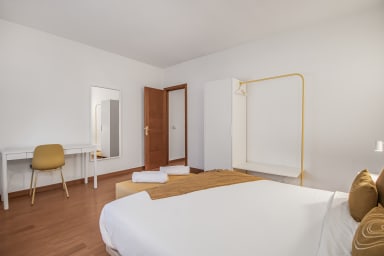 The apartment offers a modern kitchen equipped with everything you need for your stay, from appliances to utensils.