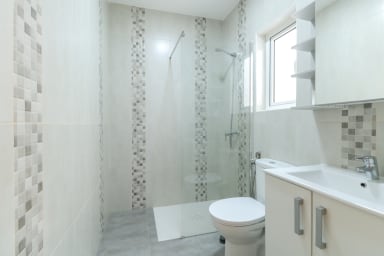 Newly renovated bathroom TO SHARE, comfortable and spacious, nice shower with large glass screen.