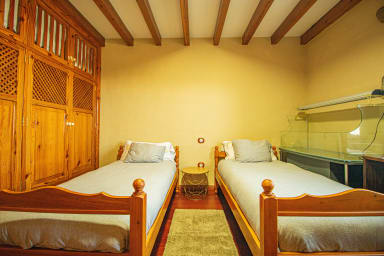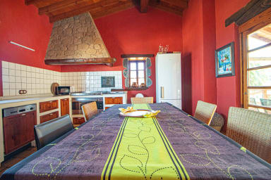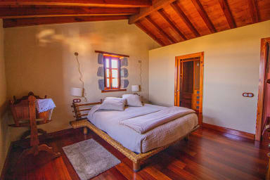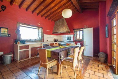 La Casa Roja está decorada en un estilo canario, con techos y suelos de madera. El amplio salón dispone de dos ambientes; zona de descanso con chimenea de adorno y otra con conexión Wi-Fi y TV de plasma. La cocina está equipada con lavavajillas, horno, microondas, vitrocerámica, nevera y lavadora y se abre a una terraza solárium con barbacoa y vistas al campo.