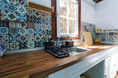 Nuestra casa cuenta con una hermosa cocina contemporánea equipada para que puedas cocinar cuando y como quieras. Dispondrás de horno, microondas, placa de cocción e incluso lavadora.
