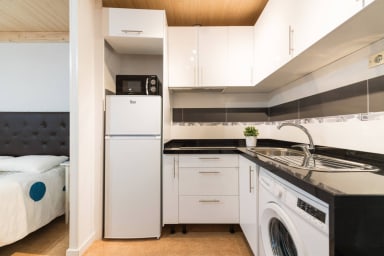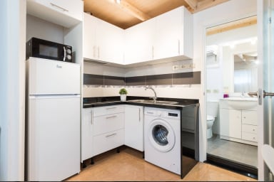Our apartment has a beautiful contemporary kitchen equipped so that you can cook when and how you want. You will have an oven, microwave, cooking plate and even a washing machine.