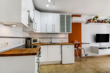 Welcome to your perfect chill spot! Our newly renovated 1-bedroom apartment comes with a lovely private terrace. Kick back in the open-plan living room and kitchen, soaking in those good vibes.