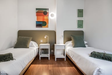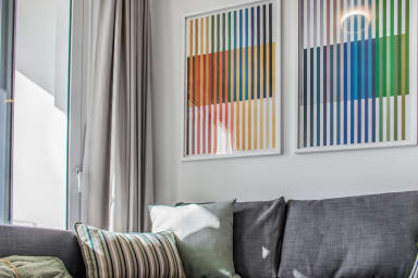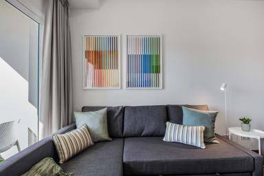The apartment offers a modern kitchen equipped with everything you need for your stay, from appliances to utensils.