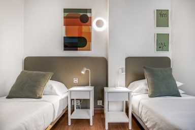 The apartment offers a modern kitchen equipped with everything you need for your stay, from appliances to utensils.
