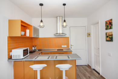 Our apartment has a beautiful contemporary kitchen equipped so that you can cook when and how you want. You will have an oven, microwave, cooking plate and even a washing machine.