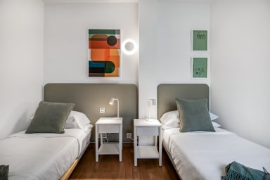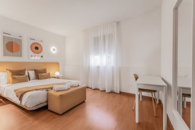 The apartment offers a modern kitchen equipped with everything you need for your stay, from appliances to utensils.