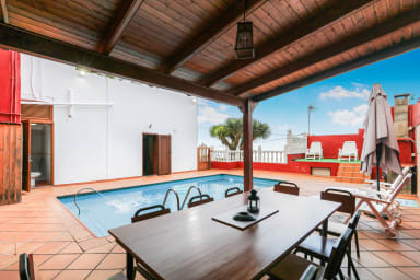 Totally equiped. House distributed in 3 bedrooms located in the main room, in addition to another independent bedroom with its own bathroom located in a low annex of the pool, has its own solarium and excellent views.