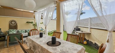 It has a quite spacious and comfortable terrace with garden so that you can enjoy the wonderful landscapes found in the Canary Islands, sit on our terrace and have a drink enjoying the calm at sunset.