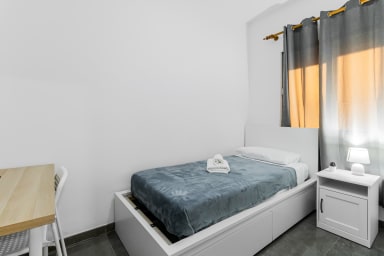 Lovely single room where you will feel at home, with a wardrobe and a desk if you need to work, study or have a snack.