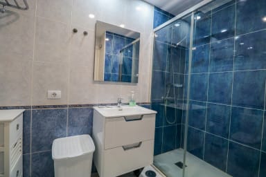 It has a beautiful contemporary kitchen equipped so that you can cook when and how you want. You will have an oven, microwave, cooking plate and even a washing machine.
