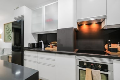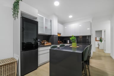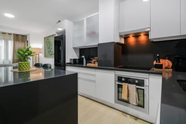 It has a stylish full equipped kitchen so that you can cook when and how you want. Spacious bathroom and a comfortable living room so you can relax.